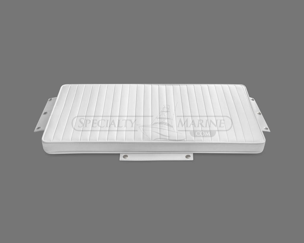 Boston Whaler console cushion for Dauntless 16' and 18' (and possibly others). This foam core cushion attaches to the front of your fiberglass center console via top snaps and snap flaps that wrap around the sides and acts as a backrest for the cooler passenger. Made from UV resistant marine grade vinyl in Boston Whaler 'white', 2" Ultra High density foam, and stainless hardware.