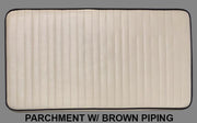 Made from UV resistant marine grade vinyl in your choice of solid off white (match for desert tan gel coat) or OEM parchment with brown piping, 2" Ultra High density foam, and stainless hardware/snaps.