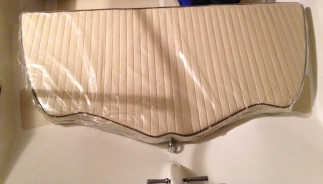 Made from UV resistant marine grade vinyl in your choice of solid off white (match for desert tan gel coat) or OEM parchment with brown piping, 2" Ultra High density foam, and stainless hardware.